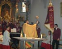 Herr Pfarrer Neidl bei der Weihe der restaurierten Fahne!