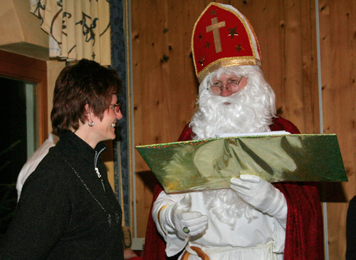 Hier bedankt er sich mit einem Geschenk bei den fleißigen Helferinnen, die auch dieses Jahr wieder maßgeblich