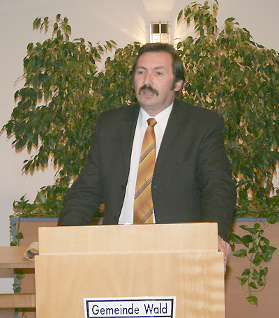 In einem Grußwort richtet sich der Bürgermeister an die Anwesenden Sänger.