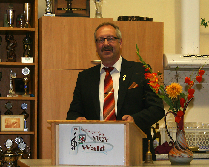 Zum Ehrenabend konnte der 1. Vorstand Dieter Schwank zahlreiche Gäste begrüßen. Zunächst lagen ihm aber die Sängerfrauen am Herzen, denn sie müssen ihre Männer immer dienstags für die Singstunde entbehren. Sie unterstützen die Sänger auch bei den zahlreichen Aktivitäten und sind maßgebend am Erfolg von öffentlichen Veranstaltungen, wie z. B. dem Weinfest beteiligt. Ein Gruß galt Resi Wagner, die der gute Geist des Sängerheims ist und auch die Dekoration übernommen hat. Weiter begrüßte er Johann Seemann, 1. Vorsitzender vom Verband Oberpfälzer Chöre e.V., 1. Bürgermeister Hugo Bauer, den 2. Bürgermeister und aktiven Sänger Fritz Stuber sowie den 3. Bürgermeister und Chorleiter Rudi Zimmerer und seinen Gemeinderatskollegen Günter Doblinger.