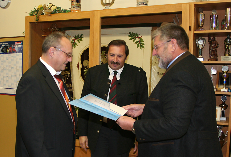 Fritz Stuber erhält eine Auszeichnung für 20 Jahre, Michael Hof für 30 Jahre und Josef Wagner für 40 Jahre aktiven Chorgesang!